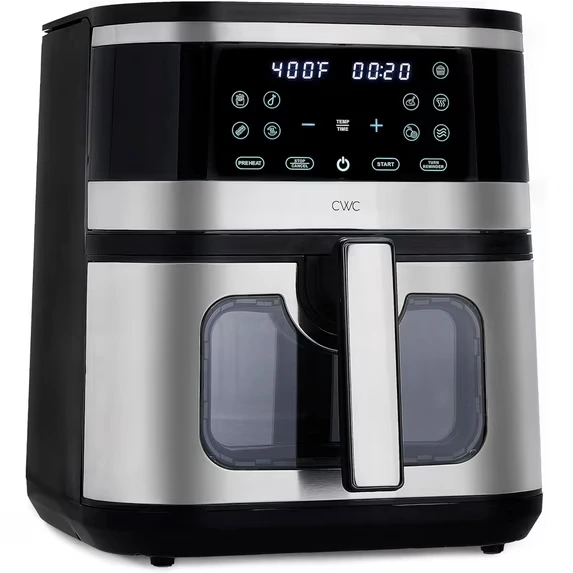 Gourmia 8 Qt Digital Window Air Fryer – 8 One-Touch Cooking Functions | Extra-Large Capacity | Gray