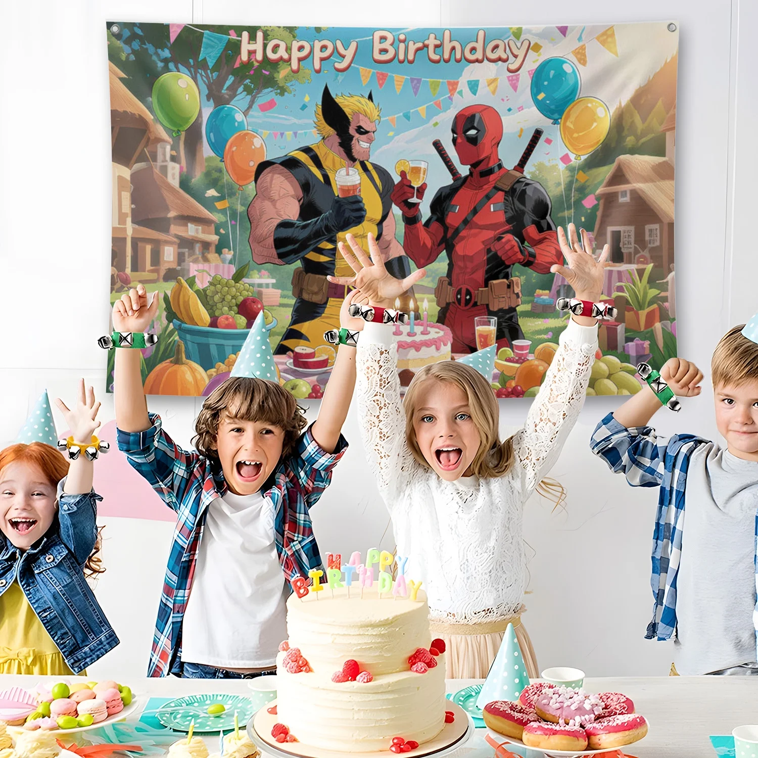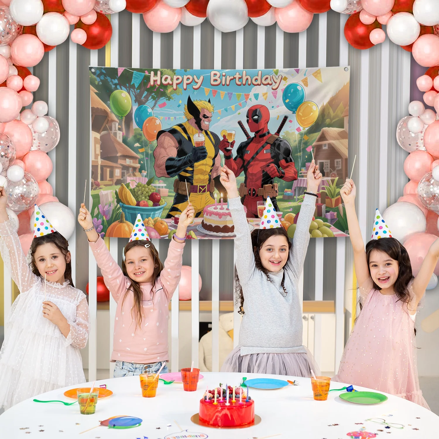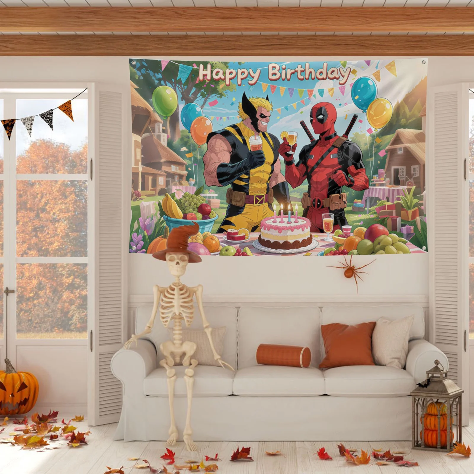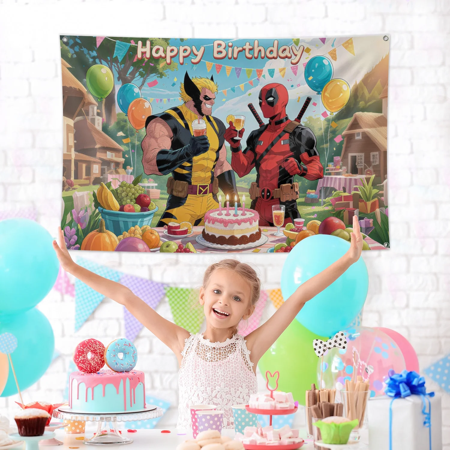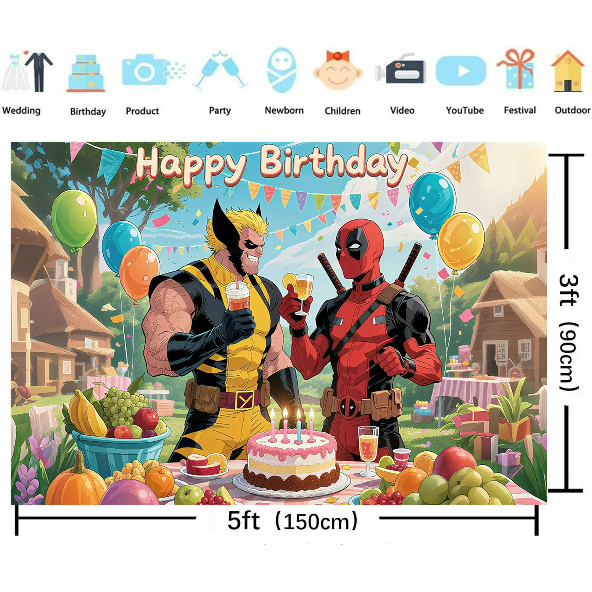 Whether used for photos, dessert tables, or the main party area, this backdrop complements other decorations seamlessly. Make your superhero birthday party unforgettable with this fun and eye-catching Deadpool & Wolverine design.