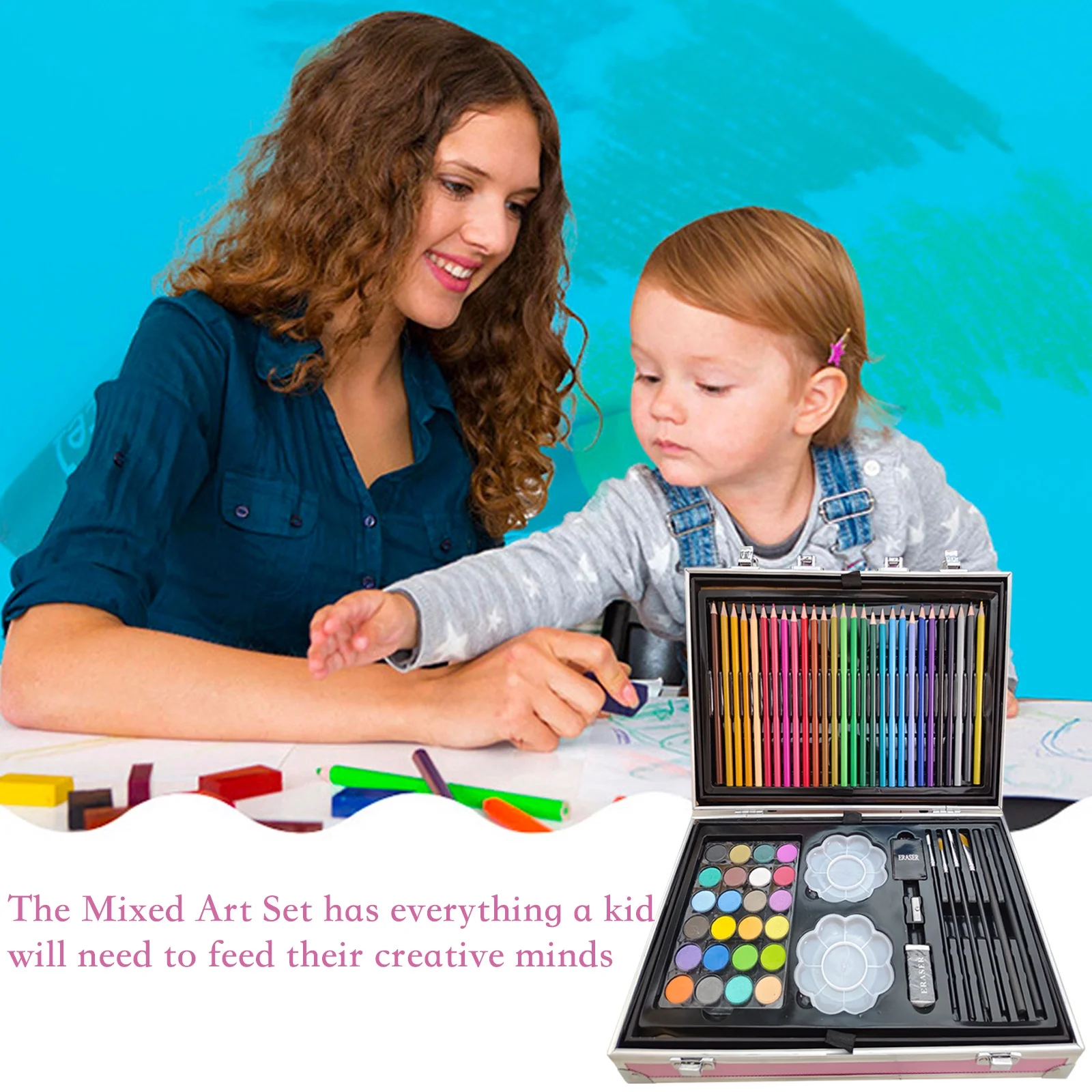 • ??Luxury Art Supply -TThis 145-piece art set is a deluxe portable double-layered aluminum gift box in a beautiful pink color, perfect for girls and boys of all ages. The buckle rectangular box makes it easier for art kits to organize supplies