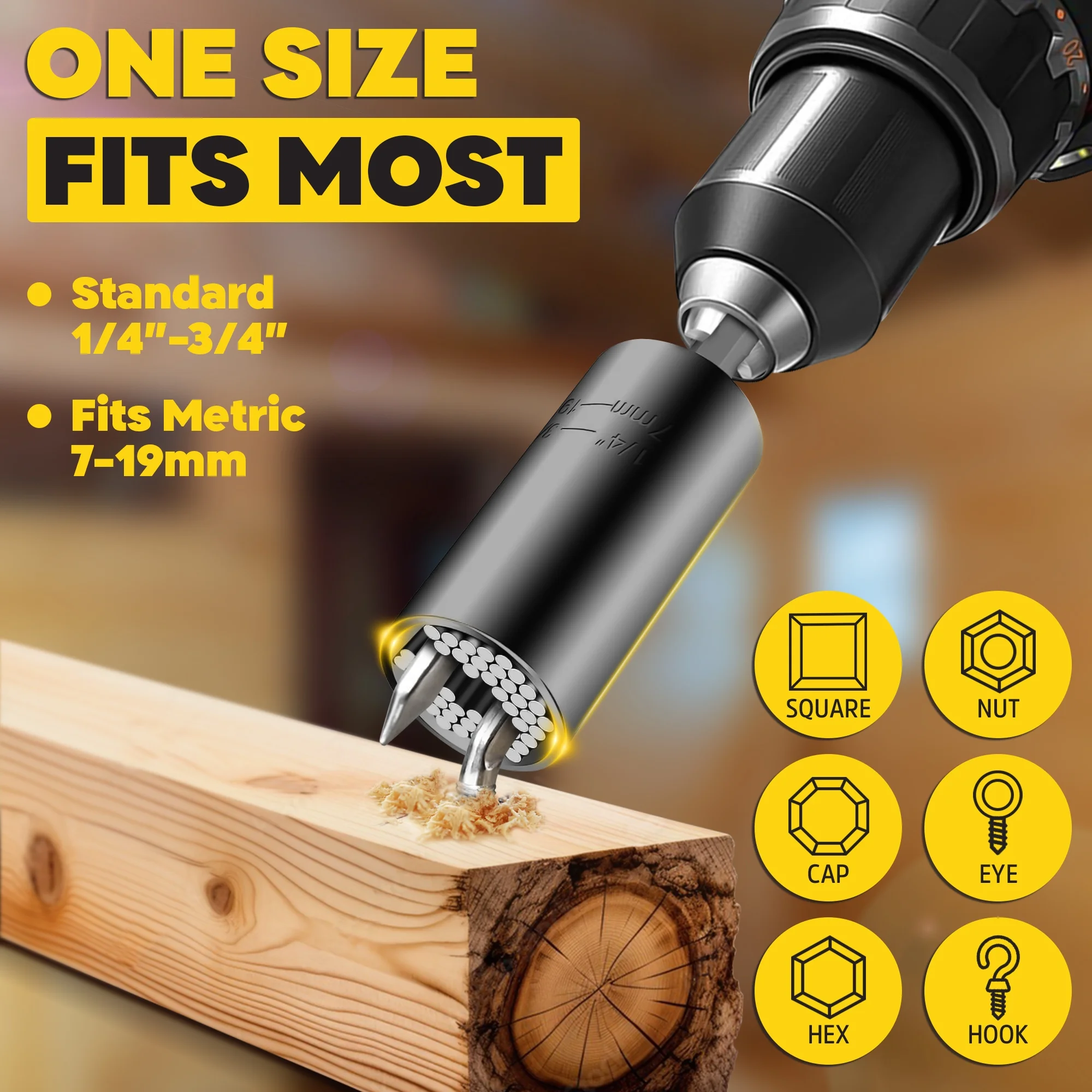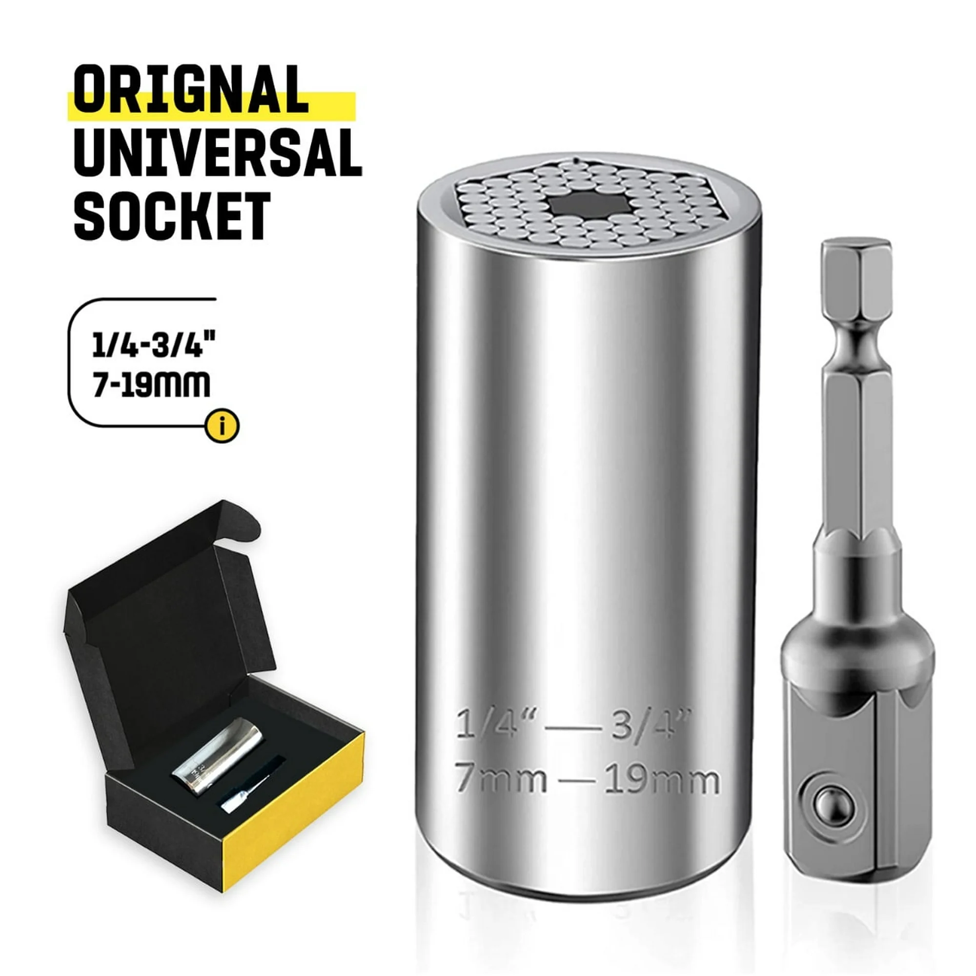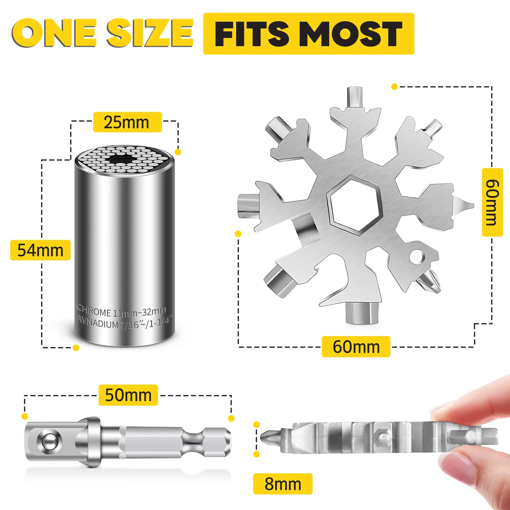 Upgrade your toolbox with this versatile 2-pack set featuring a Super Universal Socket and Snowflake Multitool. Designed to handle a wide range of nuts, bolts, and fasteners, the universal socket (7–19mm) easily adapts to different shapes and sizes. With the included power drill adapter, you can attach it to your drill for faster, more efficient repairs, making it perfect for both DIY enthusiasts and professional use.