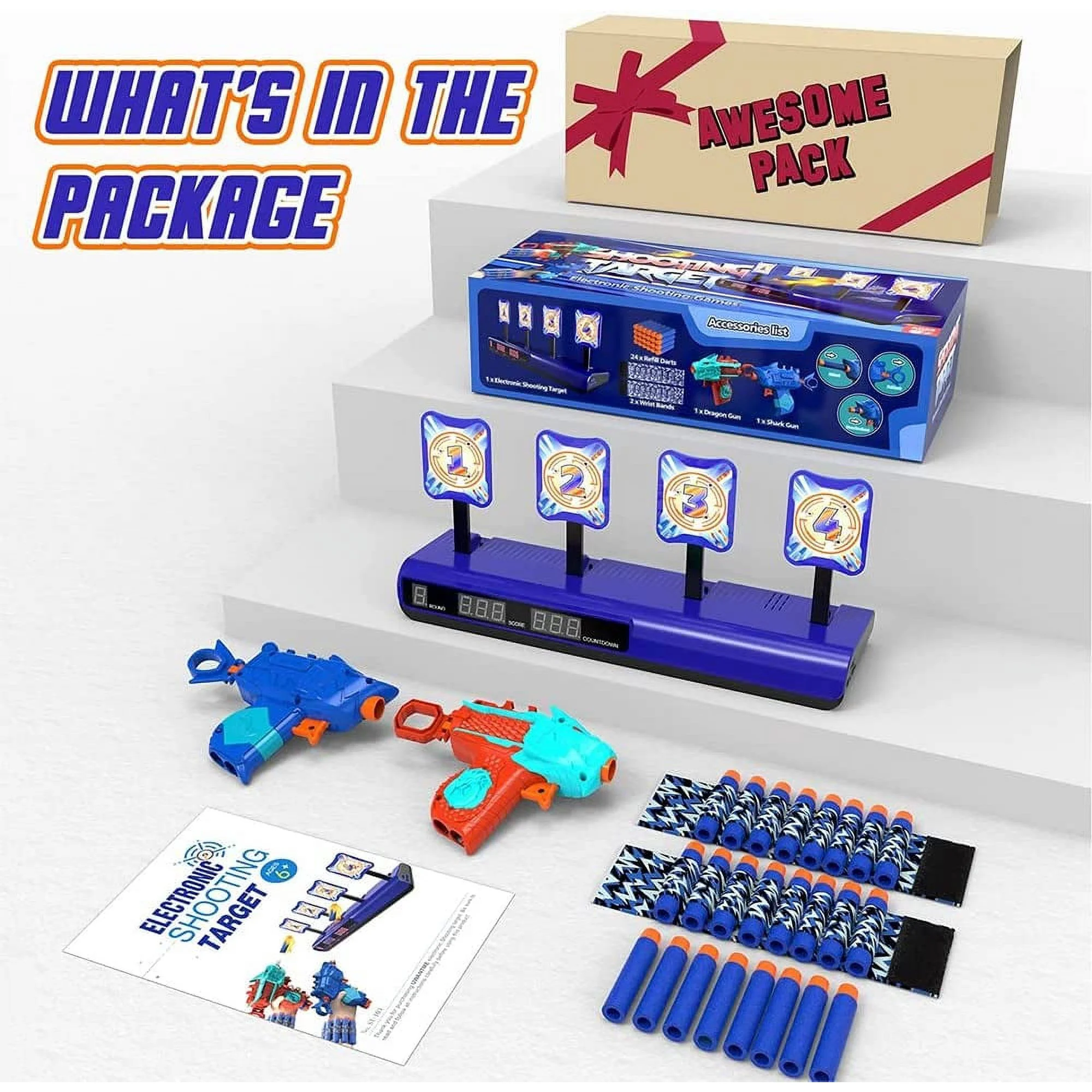 ABSOKE Electronic Shooting Target Set with 2 Foam Blasters – Outdoor Toy Gift for Kids (Ages 6-12)