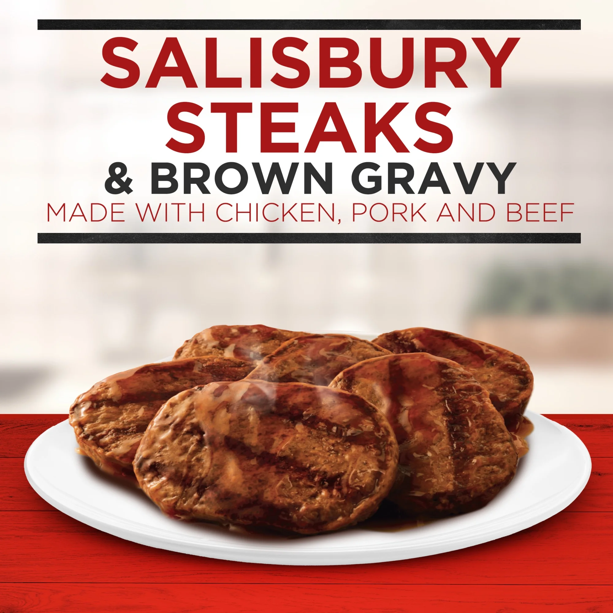 Enjoy a hearty and comforting meal with Banquet Family Size Salisbury Steaks with Brown Gravy. This 27 oz frozen meal features tender, seasoned Salisbury steaks smothered in rich, savory brown gravy, making it an easy and satisfying dinner option for the whole family. Perfect for busy weeknights, this frozen meal can be quickly heated in the microwave or oven, delivering home-style flavor with minimal preparation. The savory gravy enhances the juicy beef patties, creating a classic comfort food experience. Pair it with mashed potatoes, vegetables, or your favorite sides for a complete family meal. Convenient, delicious, and ready in minutes, Banquet Family Size Salisbury Steaks make mealtime simple without sacrificing taste. Ideal for families, students, or anyone looking for a filling, flavorful, and easy-to-prepare dinner.