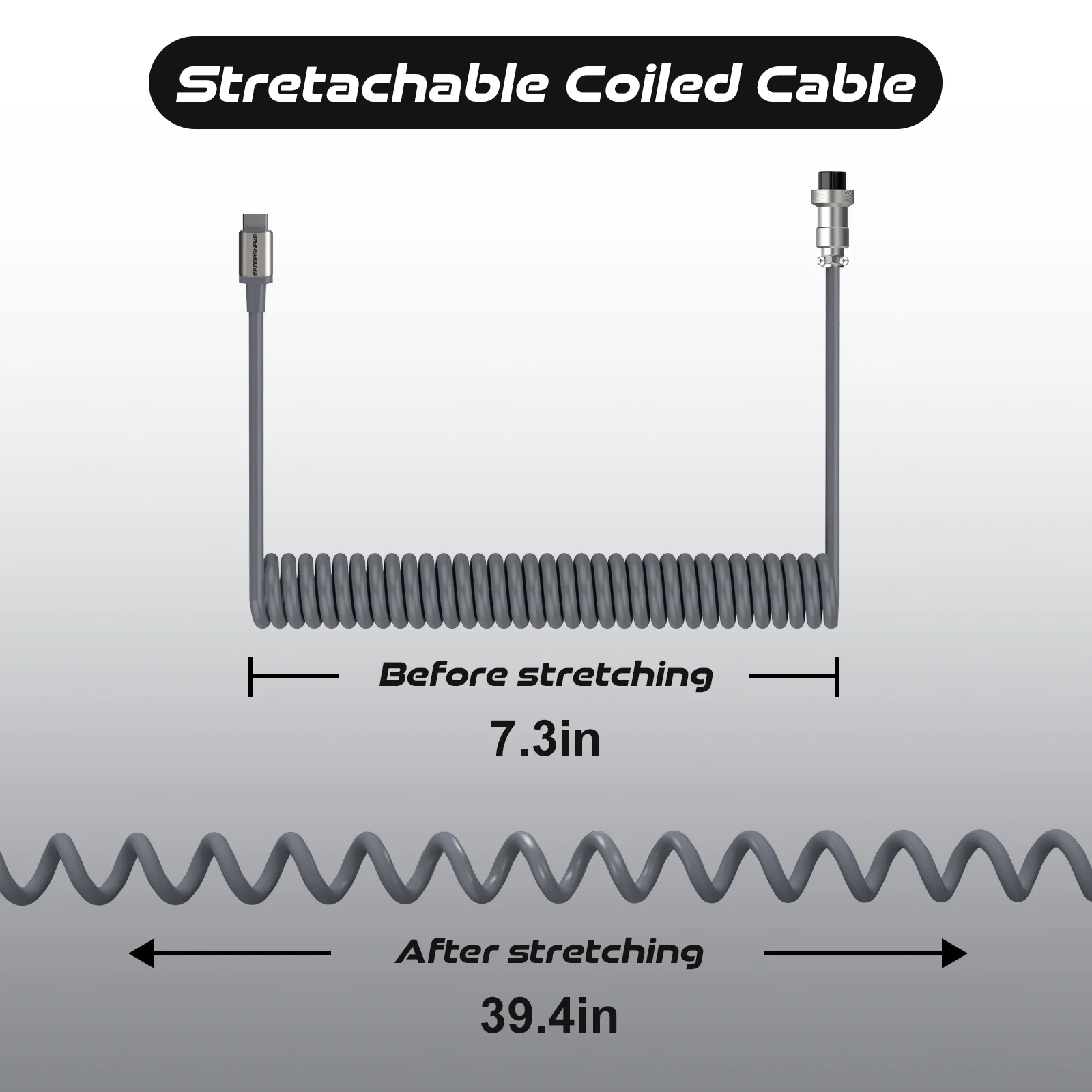 Custom Coiled USB-C Cable for Gaming Keyboards – Double-Sleeved, Detachable Metal Aviator Connector, Premium Coiled Keyboard Cable