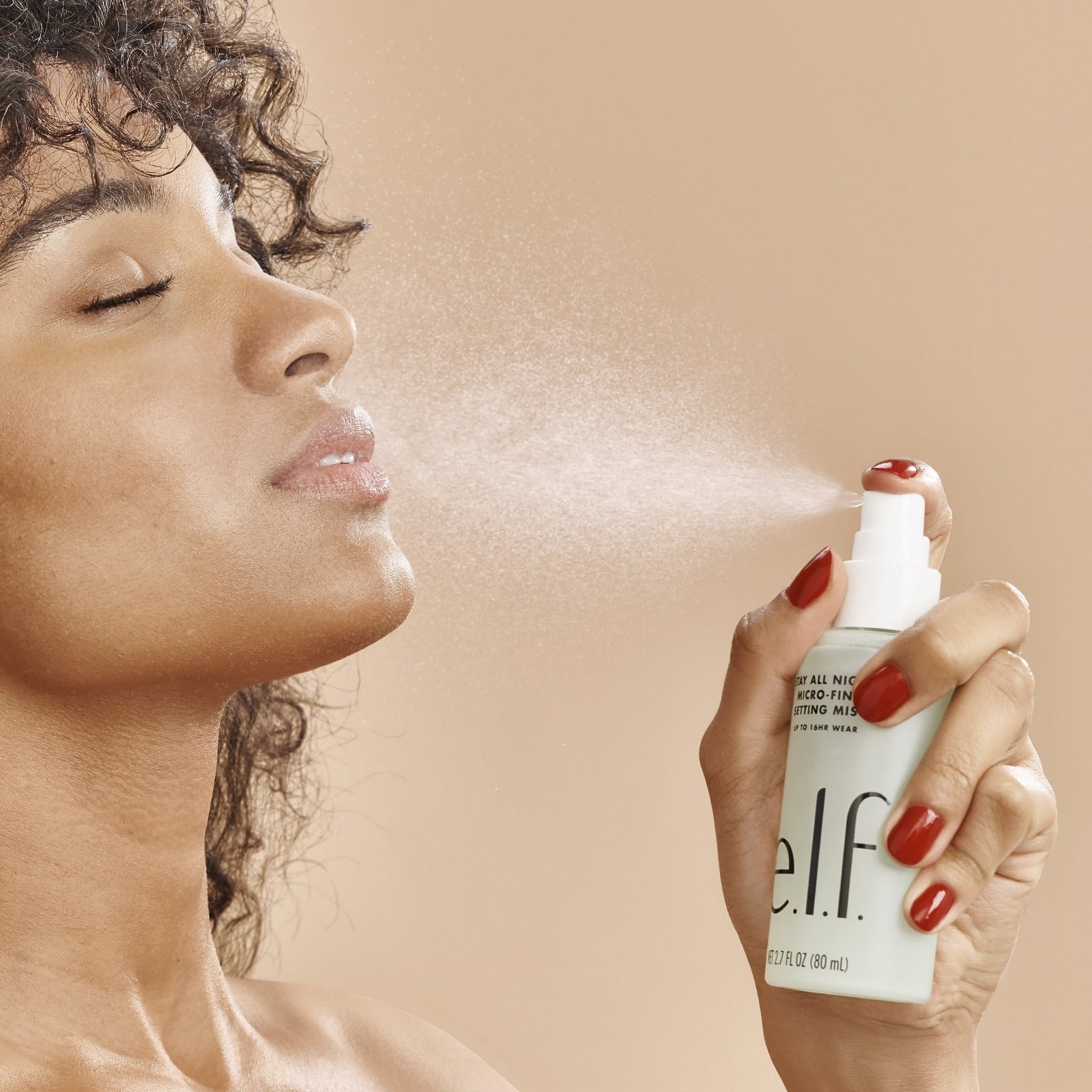 Keep your makeup fresh and shine-free for up to 16 hours with the e.l.f. All-Night Hold Micro-Fine Setting Mist. This lightweight spray delivers a soft matte finish while hydrating and soothing the skin with aloe, cucumber, and green tea extracts.