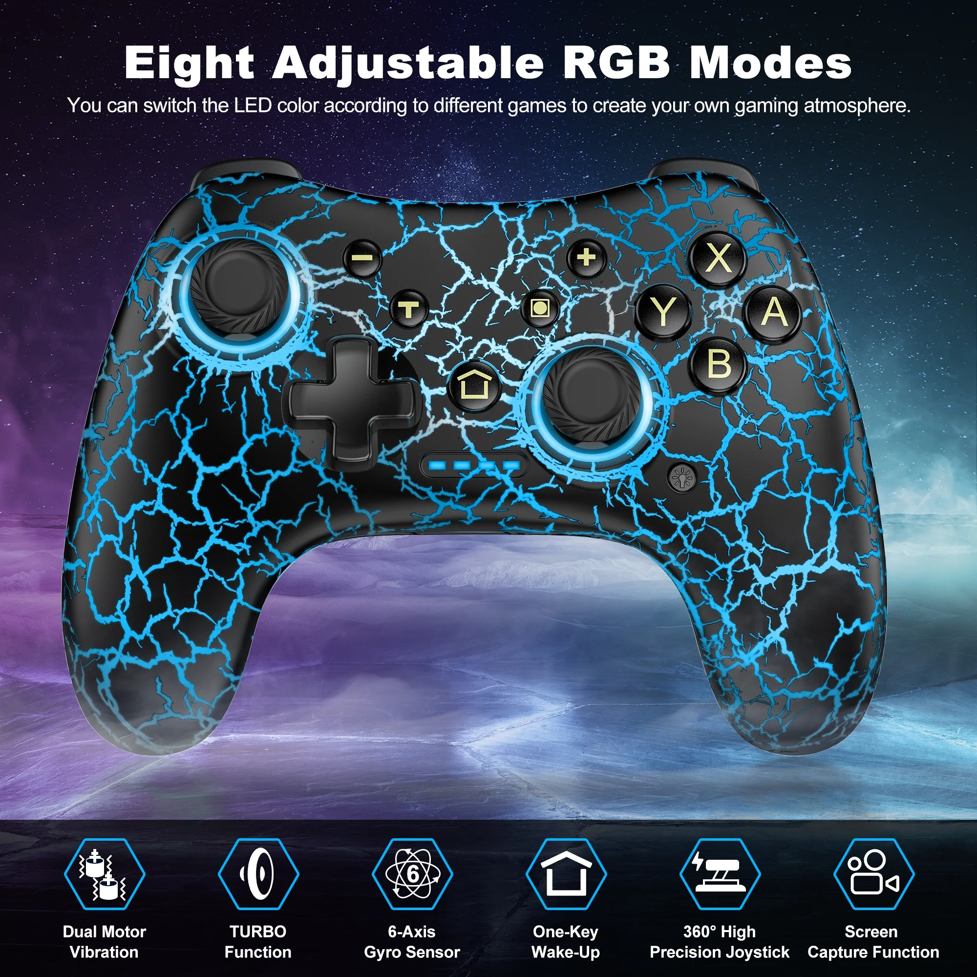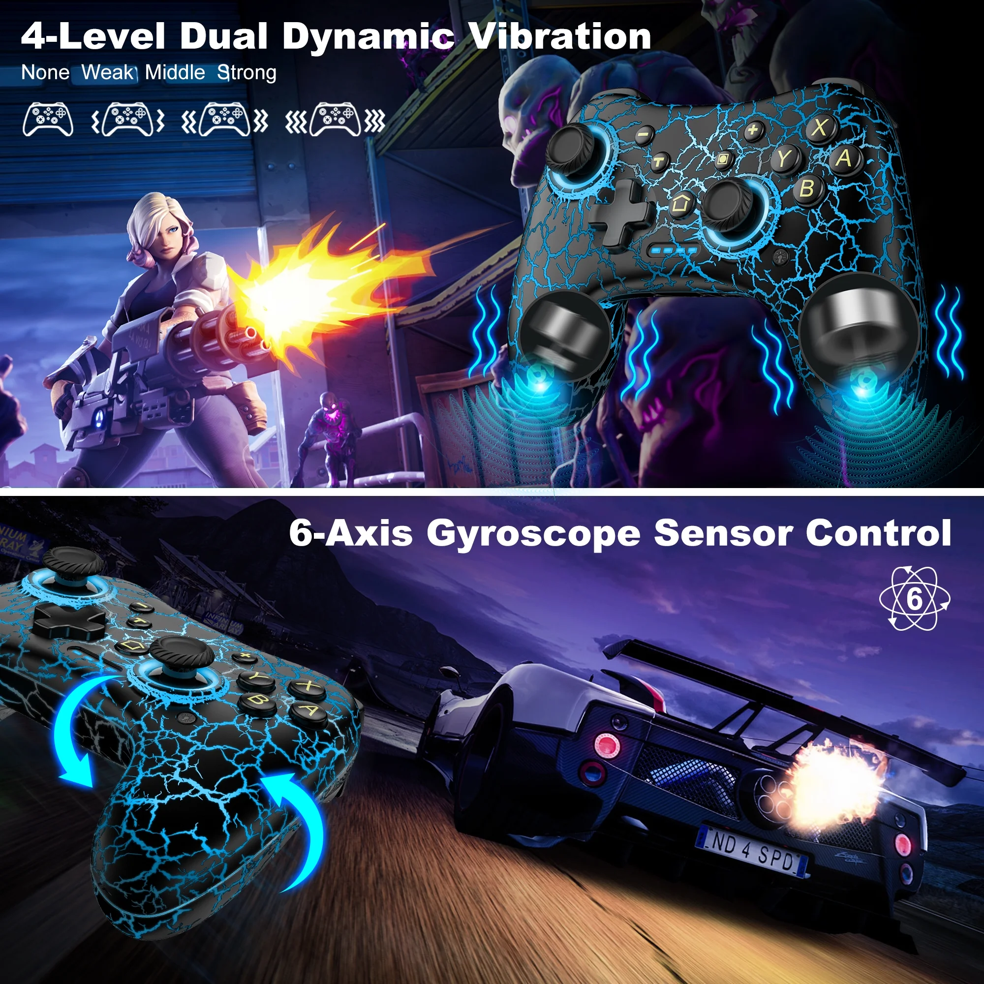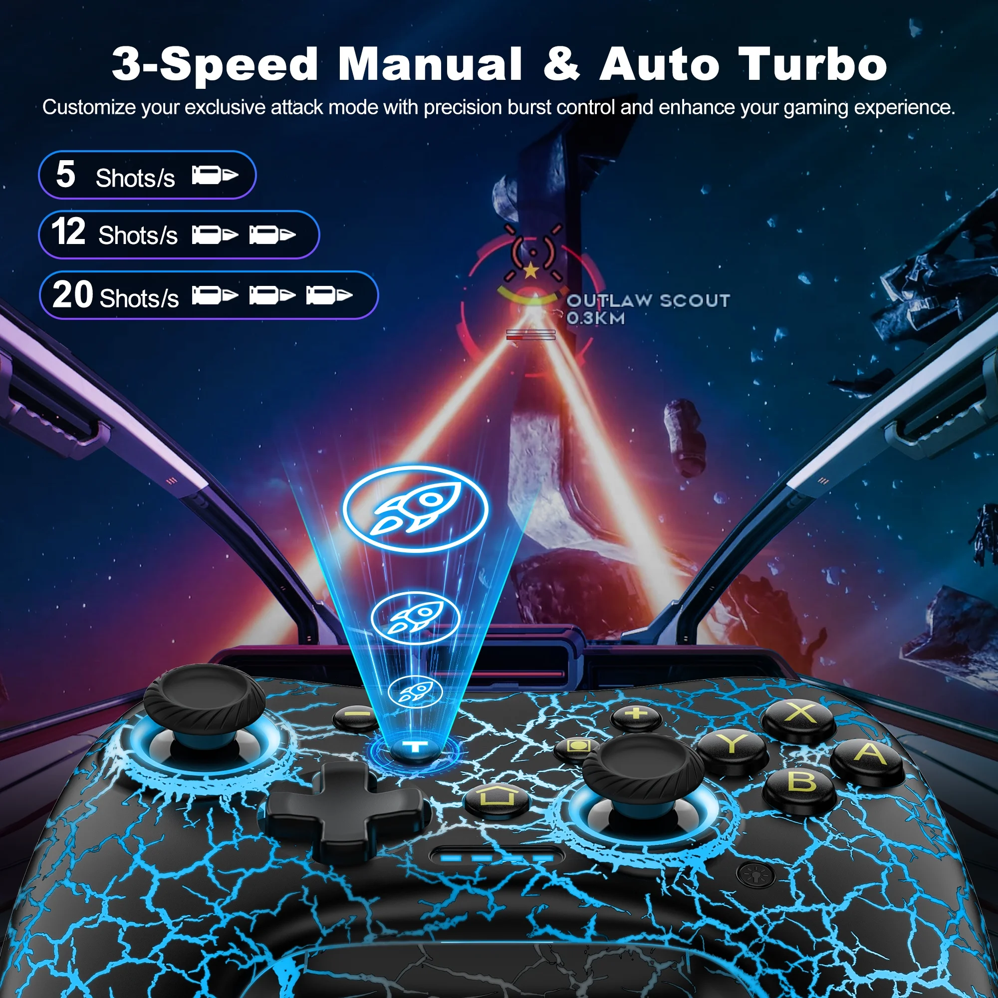 Choose from 4 adjustable vibration levels and enjoy precise motion sensing for a more immersive gaming experience. Supports both manual and automatic burst modes with 3 customizable speeds.