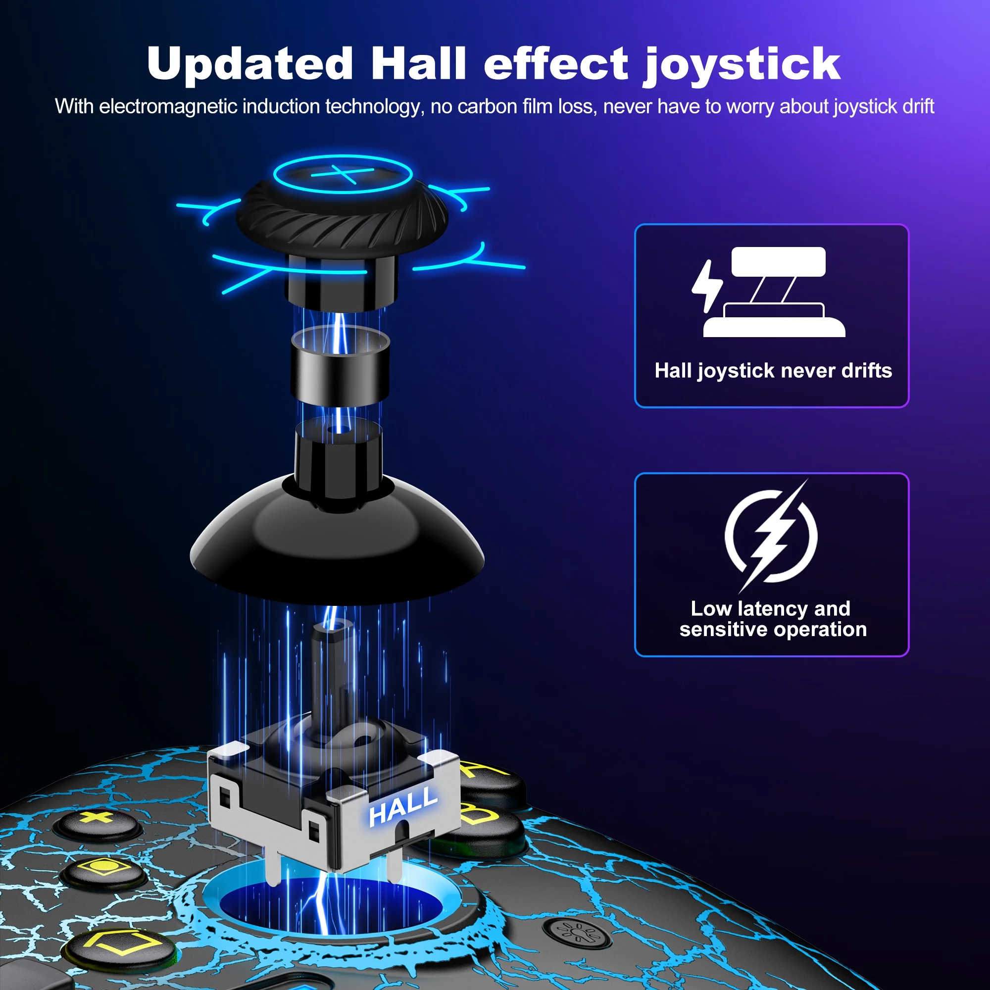 Laser-engraved joysticks and rear panel provide a delicate, non-slip texture for maximum comfort and control during long gaming sessions.