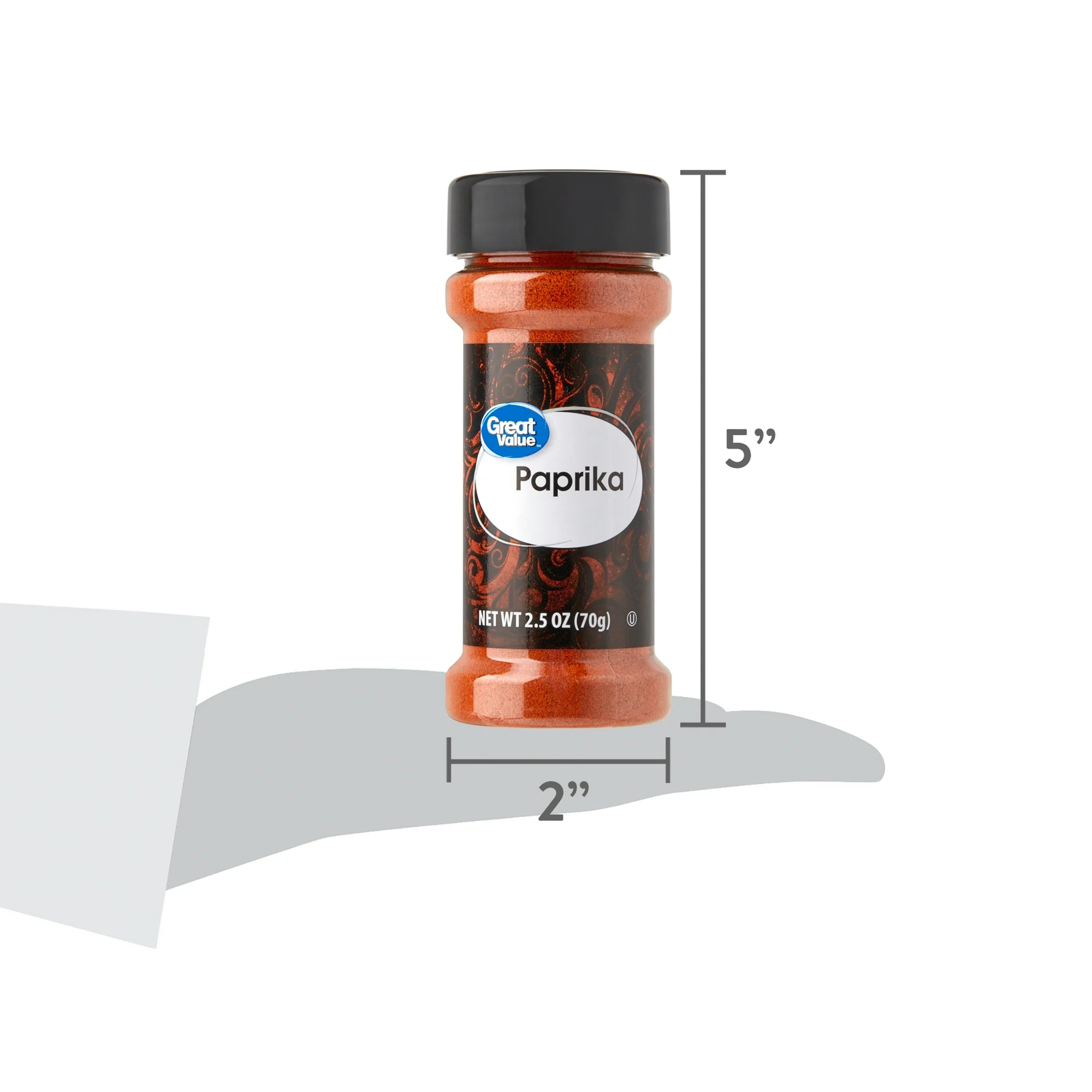 Packaged in an easy-to-store 2.5 oz bottle, Great Value Paprika is convenient to use and ideal for daily seasoning needs. Trust Great Value for high-quality spices that make every dish more flavorful, colorful, and satisfying.
