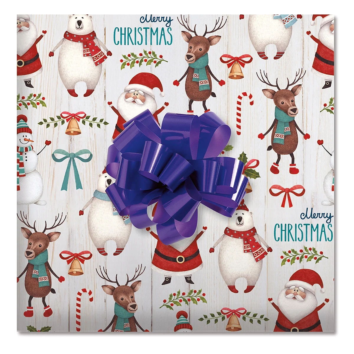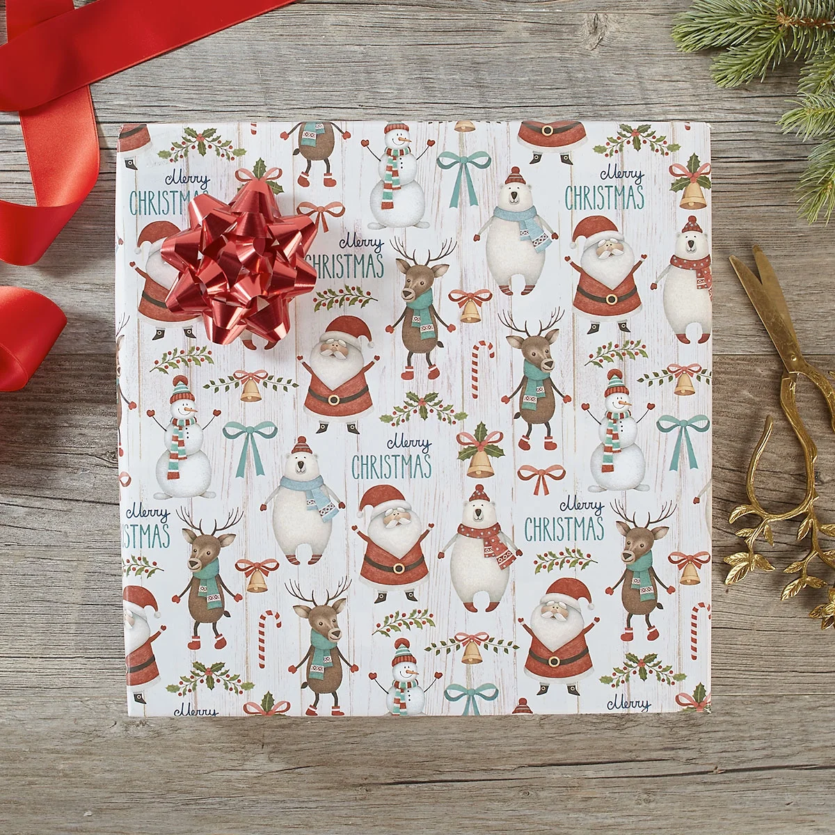 Santa & Friends Jumbo Christmas Rolled Gift Wrap: Cheerful holiday design featuring Santa Claus and friends, perfect for adding a magical touch to your presents.