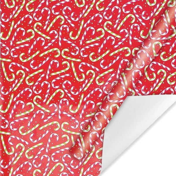 Candy Cane Joy Christmas Rolled Gift Wrap: Bright candy cane pattern on a vibrant red background, adding fun and festive cheer to your gift-giving.