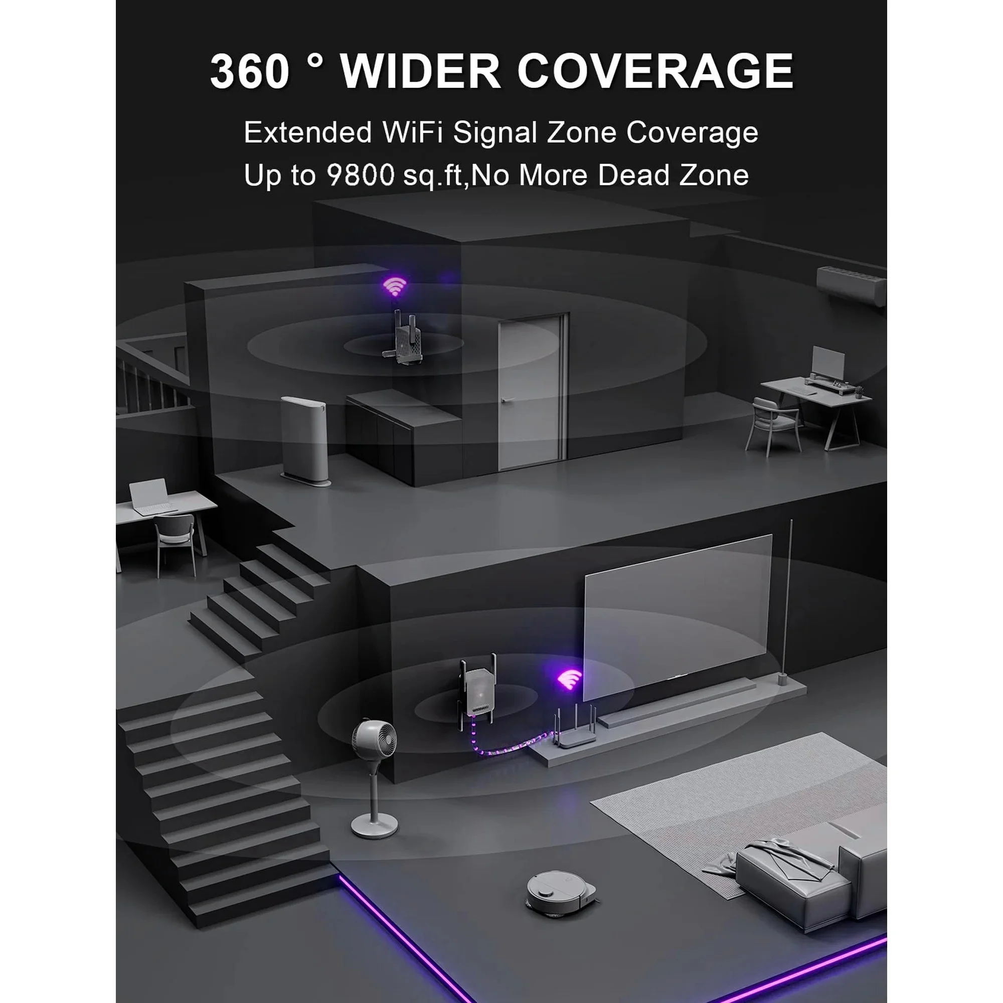 Boost your home WiFi with the KIDSNADO 2025 WiFi Extender. Featuring dual-band 2.4GHz & 5GHz speeds up to 1200Mbps, strong wall-through coverage, and up to 9,800 sq.ft range, this wireless repeater ensures smooth streaming, gaming, and browsing across your entire home.