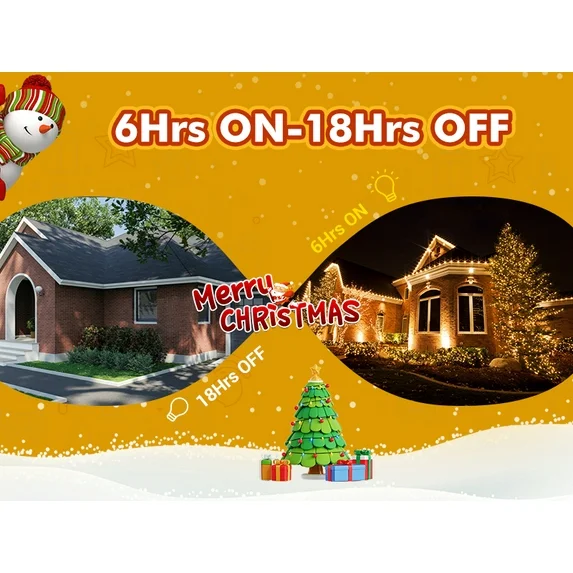 ✨ Battery Operated & Timer – Runs on 3 × LR14 batteries (not included). Built-in timer keeps lights on for 6 hrs and off for 18 hrs automatically.