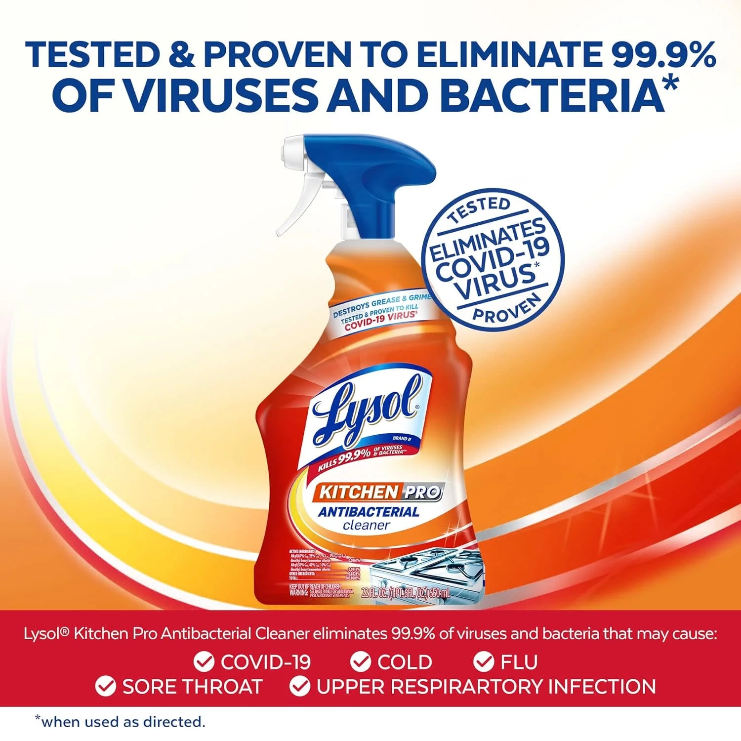 Lysol Kitchen Pro Antibacterial Cleaner Spray, 22 oz, removes grease, kills 99.9% of bacteria, and leaves a fresh citrus scent. Ideal for countertops, appliances, and everyday kitchen cleaning.