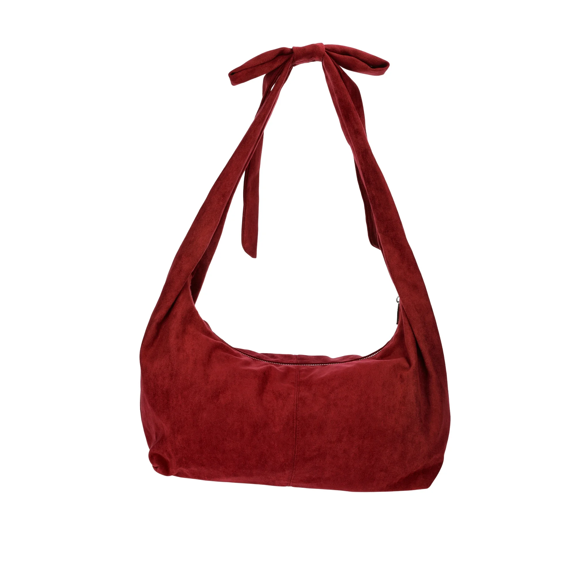Exterior: Slouchy silhouette with bow detail on strap; available in solid colors