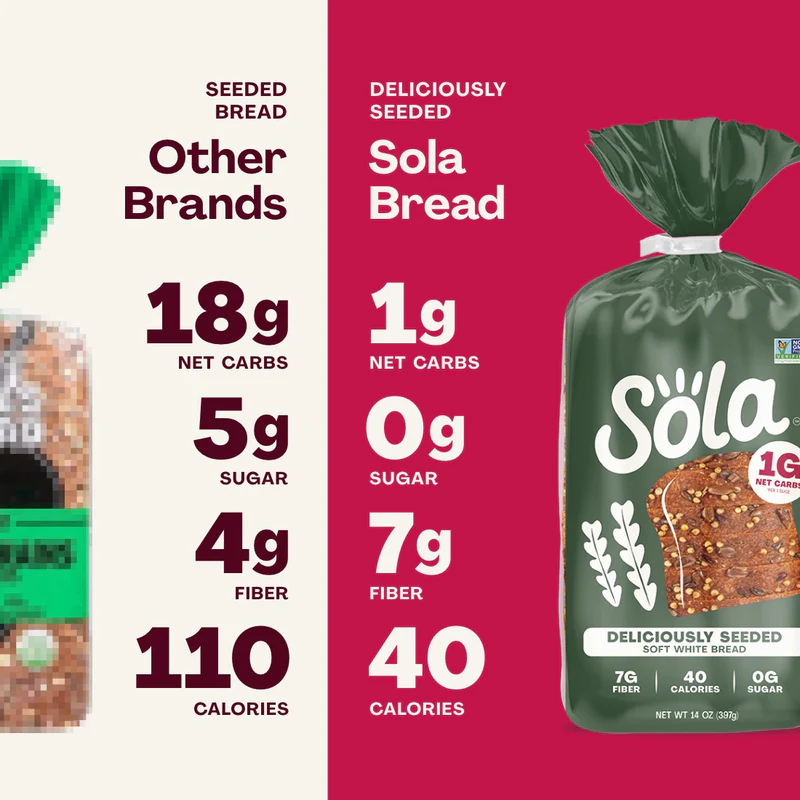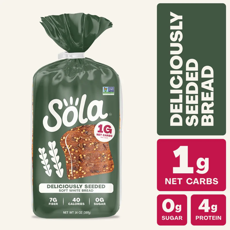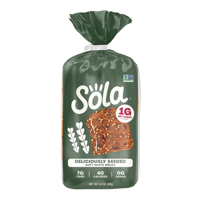 High-protein, no-sugar Sola White Bread—10g protein, 6g fiber, soft texture, Non-GMO, and shelf-stable. A healthy, delicious 20 oz loaf made with organic wheat.