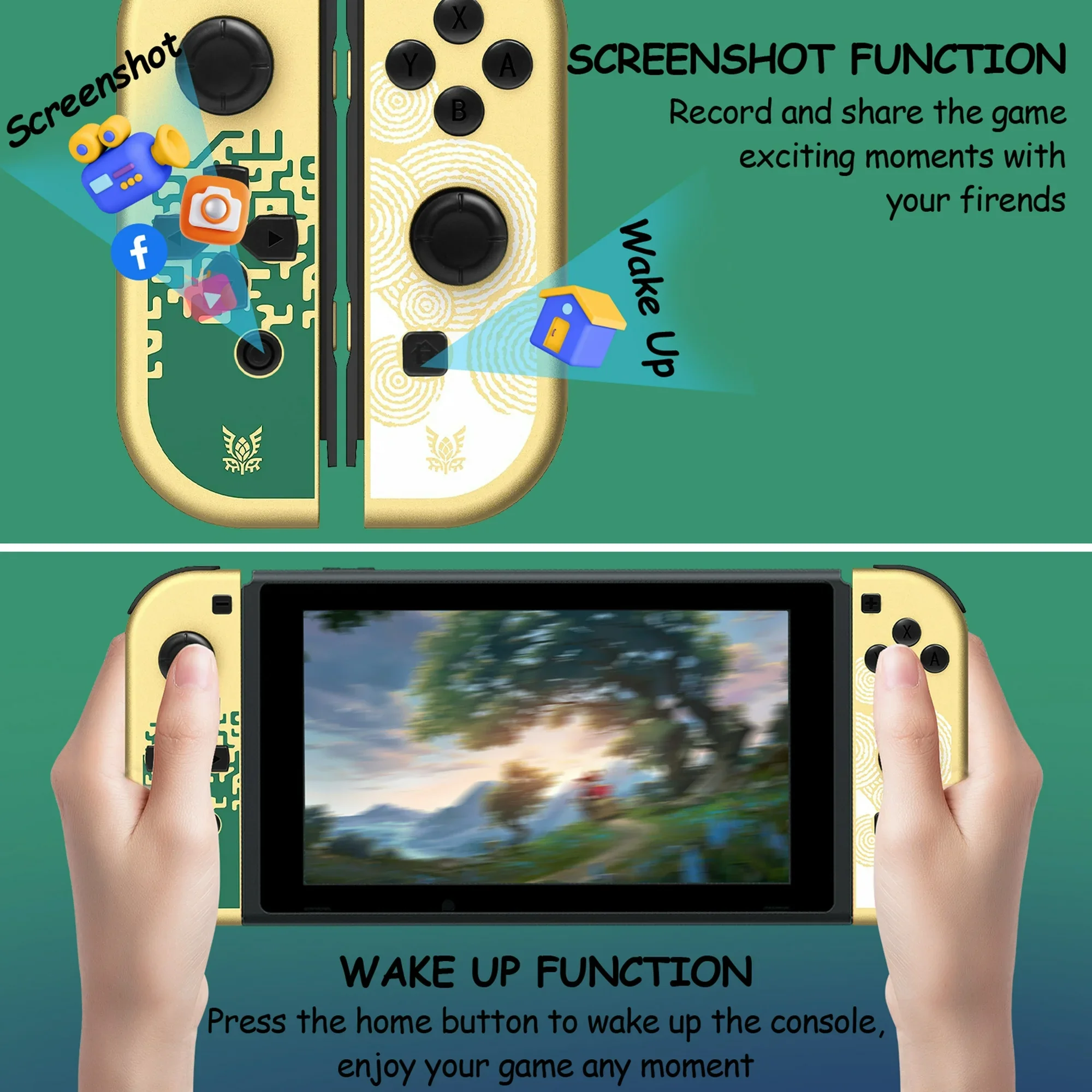 As a replacement for switch controller, controllers has 6-Axis gyro somatosensory and dual-motor vibration function excellent motion control and hand vibration shock response to provide real and stimulated gaming experience. Share your game with your friends through the screenshot function. When controller is in sleep mode, press and hold the home button of the controllers for 1s~2s to wake up your controller.