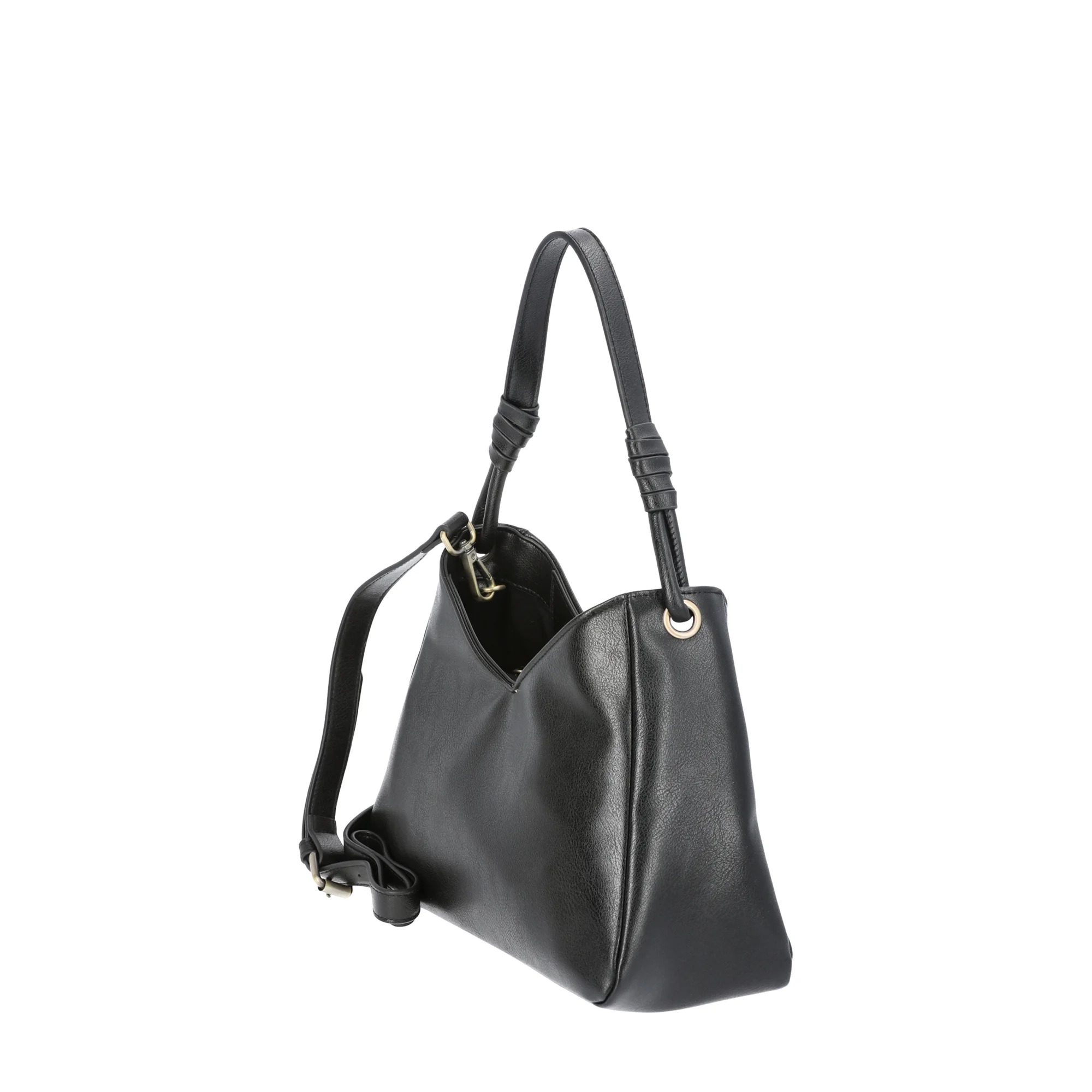 Time and Tru Women’s River Faux Leather Small Hobo Shoulder Bag, Black