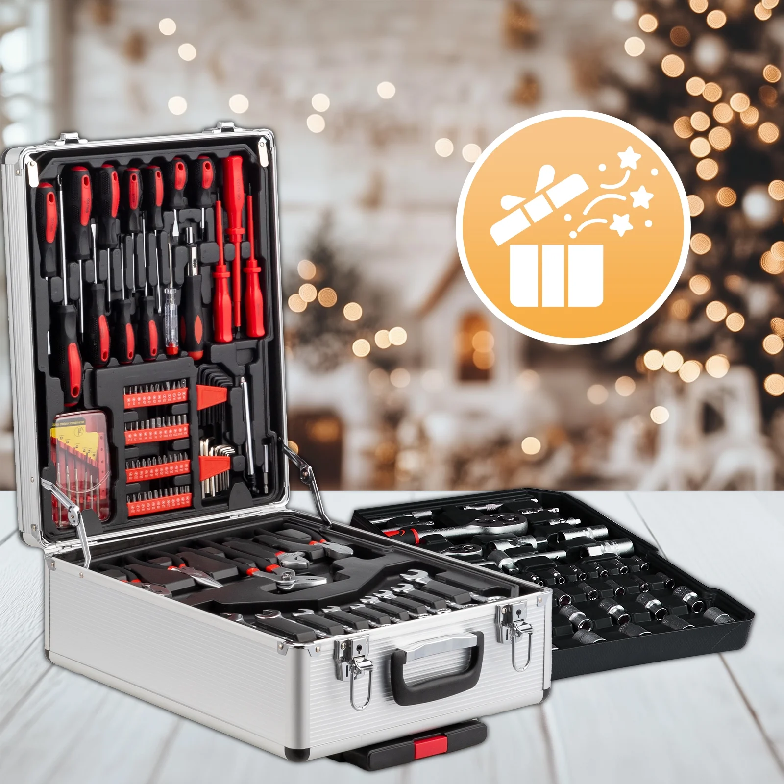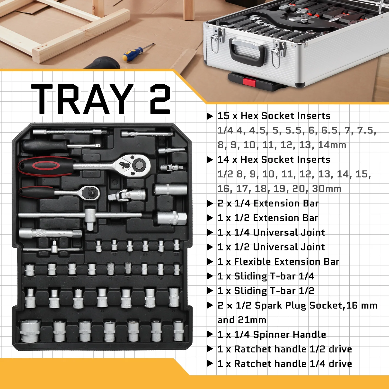 To make your work even more convenient, the entire kit comes packed in a heavy-duty wheeled trolley case for effortless mobility. The aluminum exterior gives it a sleek, professional look while protecting your tools from impact and moisture. Whether you’re moving around your home, traveling to a job site, or keeping it stored in the garage, this tool set brings efficiency, reliability, and convenience to your daily repair routine.