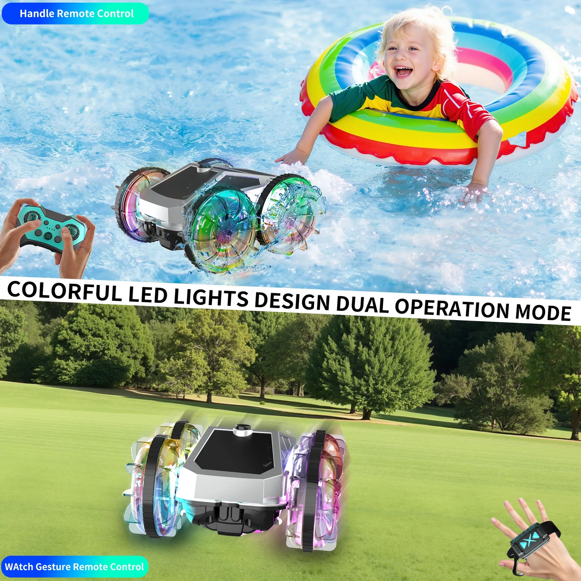 Unleash non-stop fun with the UUGEE 4WD Amphibious RC Car & Boat! This versatile remote control vehicle can conquer land, water, and perform 360° spins with bright LED lights for thrilling day and night action. Perfect for kids ages 8 and up, it makes an exciting birthday or Christmas gift.