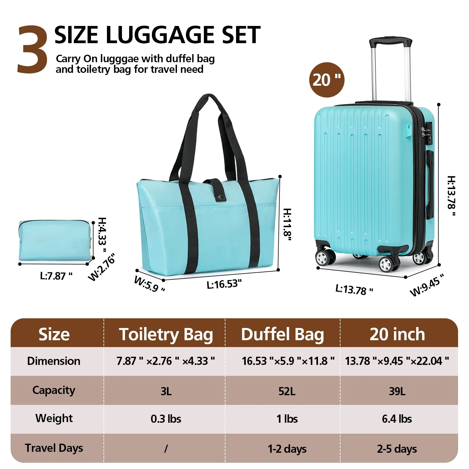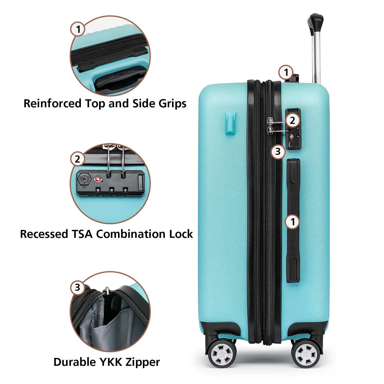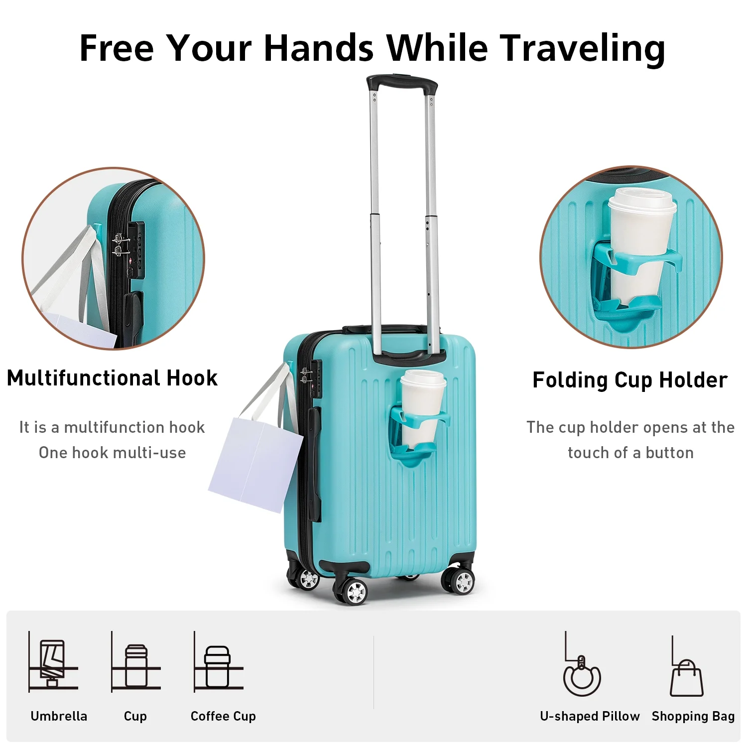 • Crafted from durable ABS+Polycarbonate material, providing you with a lightweight yet sturdy carry-on luggage set.
