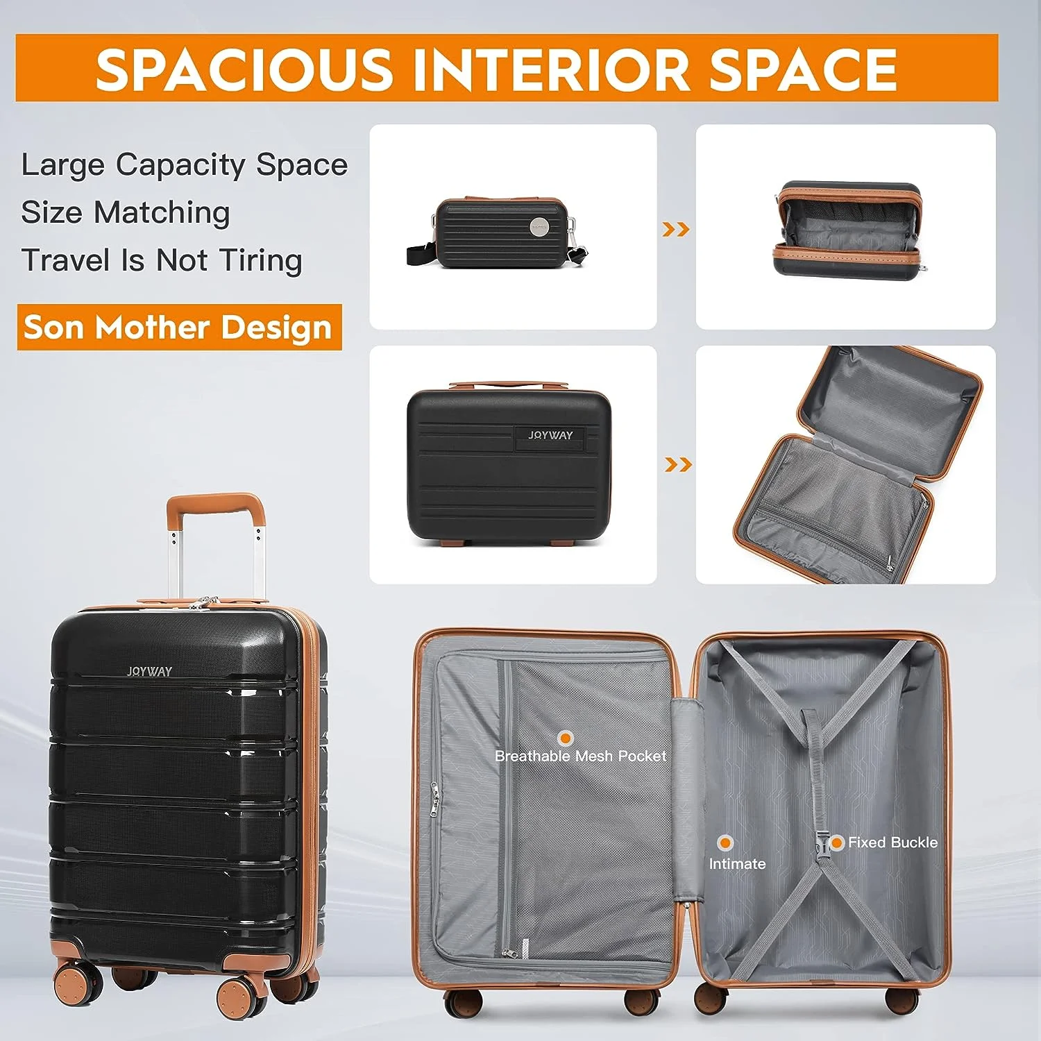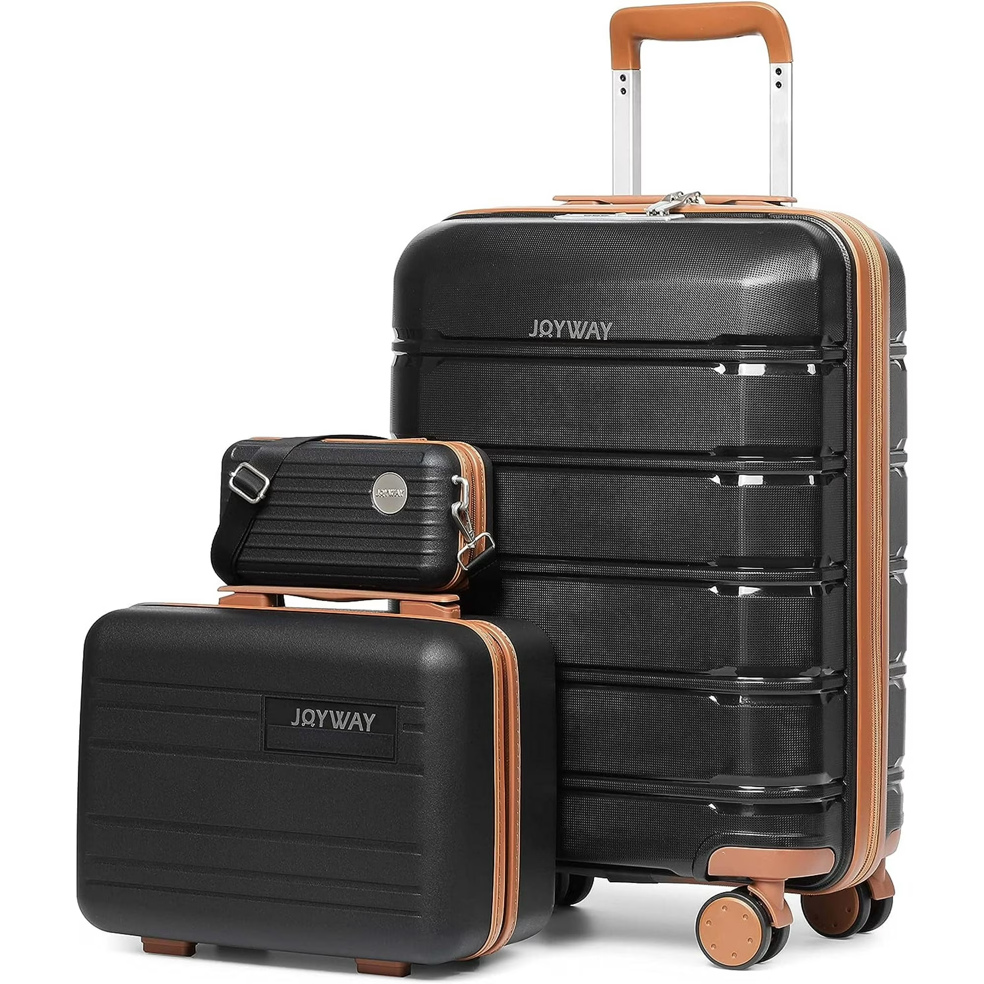 • Joyway luggage PP material: PP (polypropylene) is a thermoplastic resin with high tensile strength. Mainly used in aviation products and high-end bags. It has the characteristics of light weight, softness, strong flexibility, and not easy to deform. Anti-ramping, anti-drop, anti-explosion, waterproof, anti-collision, can rebound immediately afterwards to protect luggage. Lightweight and durable. So you can go anywhere with ease and confidence. We also match it with a 14-inch cosmetic case. The Joyway carry-on luggage is light and wear-resistant, suitable for business trips, travel, and school. Let you travel worry-free'