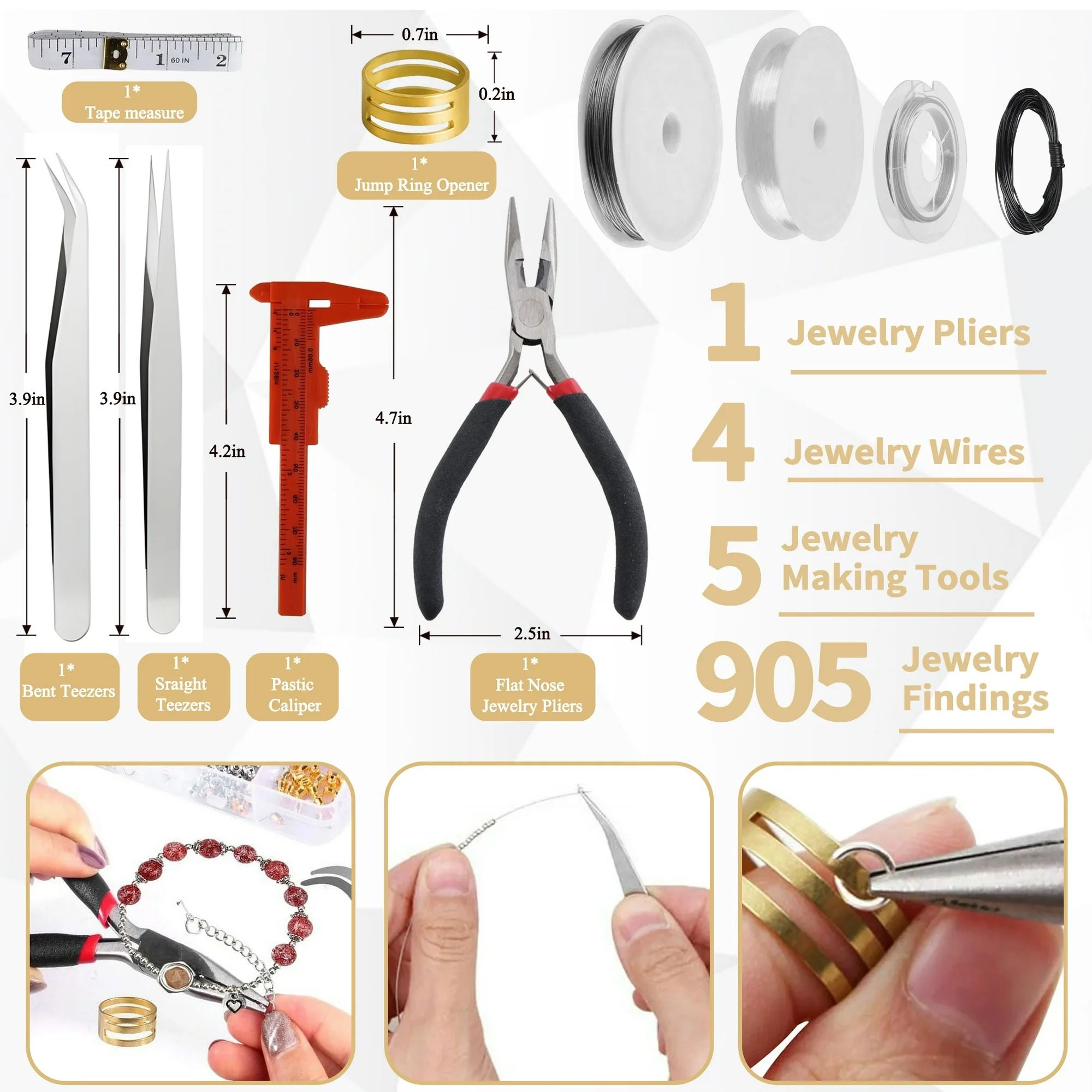 [BASIC TOOLS] Comes with flat nose pliers, bent & straight tweezers, plastic caliper, jump ring opener, and tape measure — everything you need for opening rings, clamping, straightening wires, and simplifying assembly.